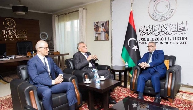 و التقى رئيس المجلس الاستشاري الليبي، خالد المشري، اليوم، السفير الإيطالي لدى ليبيا، جوزيبي بوتشينو و مبعوث وزير الخارجية الإيطالي، نيكولا أورلاندو، بمقر المجلس بالعاصمة طرابلس. و قال بيان للمجلس إن الطرفان بحثا العلاقات الثنائية بين البلدين و سبل تعزيزها و خاصة في الجانب الاقتصادي منها، بما يخدم صالح الشعبين الليبي و الإيطالي.