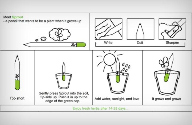للعناية بالبيئة، ابتكرت شركة قلم رصاص في نهايته بذرة، عند قرب انتهاء “الزبون” أكان طالبا أو عاملا من استخدامه يضعه في حوض ترابي لإنبات بعض الأعشاب أو الخضر أو الفواكه.