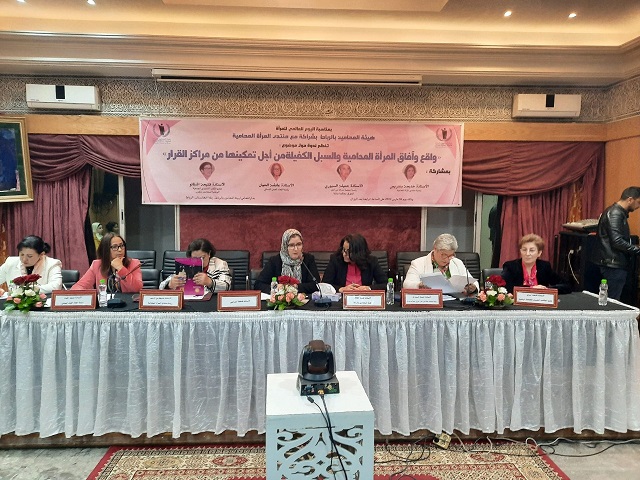 نظمت نساء هيئة المحامين بالرباط بشراكة مع منتدى المرأة المحامية، ندوة صحافية، تحت عنوان “واقع و آفاق المرأة المحامية و السبل الكفيلة من أجل تمكينها من مراكز القرار”، في إطار الاحتفاء باليوم العالمي للمرأة. و خلال هذه الندوة ترافعت المحاميات حول التمييز و الإهمال الذي تتعرض له المرأة المحامية ، كما تحدثن عن معيقات وصول المرأة المحامية لمناصب القرار و المرأة المغربية عموما، و انخراطها بالمجتمع المدني و أهمية الأدوار التي تلعبها في ترسيخ الثقافة الحقوقية. و في هذا السياق، انتقدت فتيحة اشتاتو عضو المكتب التنفيذي للجمعية الوطنية للمحامين بالمغرب، و المترشحة سابقا لمنصب نقيبة للمحامين، القانون المنظم لمهنة المحاماة في المغرب، متهمة بعض مواده بالتمييز بين الجنسين في نصوصها، كما أحصت أعداد المنخرطين في مجلس هيئة المحامين لم يتجاوز 19 عضوة في حين عدد الذكور 137 عضو، و لا تتجاوز نسبة الأعضاء الإناث 8 بالمائة مشاركة في تمثيل القرار على الصعيد الوطني كله.