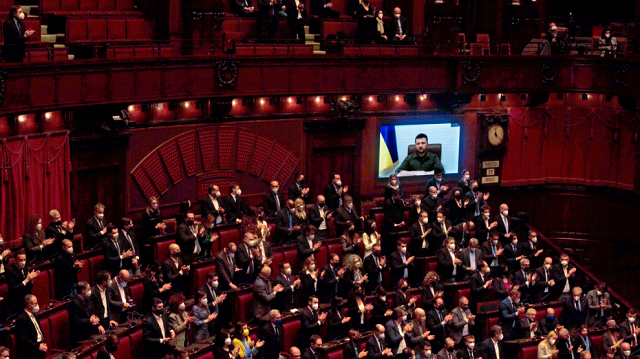و عبر عن إعجاب روما بشجاعة و تصميم و وطنية رئيس و شعب أوكرانيا. و قبل البدء بوقت قصير ساد تصفيق طويل و حار من أعضاء مجلس الشيوخ و النواب الحاضرين. و اعتبر أن غطرسة الحكومة الروسية اصطدمت بكرامة الشعب الأوكراني الذي يتصدى لأهداف موسكو التوسعية، و يفرض تكاليف كبيرة على الجيش المعادي. و ذكر أن الإيطاليين فتحوا أبواب منازلهم للاجئين مع الشعور بالترحيب الذي يعد مصدر فخر لروما، فيما ستواصل القيام بذلك. و حول تقديم المساعدة لأوكرانيا، قال: مستعدون للقيام بالمزيد من الجهد، معبراً عن القرب من الأوكرانيين الذين يعيشون بالفعل في إيطاليا. من جهته، قال وكيل وزارة الشؤون الأوروبية إنزو أمندولا على موقع التدوينات القصيرة “تويتر”، إن كلمات الرئيس الأوكراني فولوديمير زيلينسكي تذكر الجميع أنه من جهة يوجد المحتل و من جهة أخرى هناك شعب يقاوم. فيما علقت جورجيا ميلوني، رئيسة حزب فورتسا إيطاليا، معتبرة أن حديث زيلينسكي إلى البرلمان الإيطالي يعد تدخل زعيم أوروبي يتحدث إلى قلب و قيم حضارتنا المشتركة. من جهته، رأى زعيم إيطاليا فيفا، ماتيو رينزي، أن الدراما التي تعيشها أوكرانيا حالياً قدمت بطريقة جيده، مشيراً إلى أن السلام يمر عبر الهدنة و الهدنة تمر عبر اتفاق و الاتفاق يمر عبر الدبلوماسية. و أكد أن الدبلوماسية مفيدة في الأزمات و الحرب.