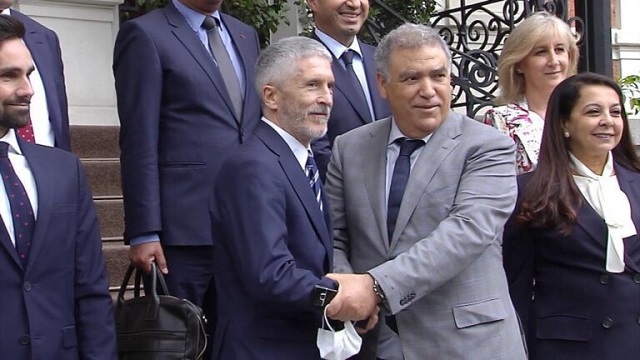 عقد وزير الداخلية عبد الوافي لفتيت، و نظيره الإسباني، فيرناندو غراندي مارلاسكا، يوم الأربعاء بمدريد، اجتماع عمل أجريا خلاله محادثات معمقة حول عدد من القضايا ذات الاهتمام المشترك. و أوضح بلاغ مشترك أن الوزيرين ذكرا خلال هذا اللقاء، بالأهمية الإستراتيجية للعلاقات القائمة بين المملكتين، و التي تنهل من روابط الصداقة و الأخوة التي تجمع بين الملك محمد السادس و الملك فيليبي السادس. و أشاد الوزيران، في هذا السياق، بالتعاون النموذجي بين مصالح وزارتي الداخلية بالبلدين، و الذي يأتي تكريسا للدينامة الجديدة و غير المسبوقة للعلاقات بين المغرب و إسبانيا، القائمة على الشفافية و الاحترام و الثقة المتبادلة، و التعاون الصريح و الوثيق و التشاور الدائم.