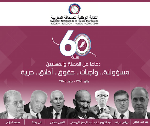 تحتفي النقابة الوطنية للصحافة المغربية بذكرى الستين لتأسيسها ” 25 يناير 1963 -25 يناير 2023 “، و ذلك تحت شعار: “60 سنة دفاعا عن المهنة و المهنيين مسؤولية.. واجبات.. حقوق.. أخلاق.. حرية”، و ذلك من خلال تنظيم مجموعة من الفعاليات الفكرية و الثقافية و الفنية. و بهذه المناسبة تنظم النقابة الوطنية للصحافة المغربية، لقاء “التأسيس و المسار” يجمع رواد النقابة الوطنية للصحافة المغربية و مجموعة من مؤسسيها و عدد كبير من الشركاء، و ذلك يوم الأربعاء المقبل. كما سينظم حفل فني بمشاركة الفنانين: “لطيفة رأفت، زكرياء الغافولي، عمر بوتمزوغت، سامية أحمد، التقديم: للزميل عماد النتيفي”.