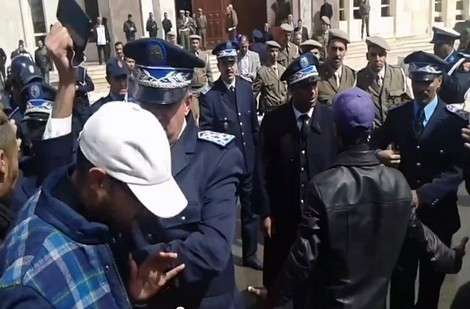 أسفر تدخل قوات الأمن لتفريق معطلين، كانوا بصدد تنظيم وقفة احتجاجية صباح اليوم أمام قصر عمالة آسفي، عن إصابة عدد من المحتجين بكدمات وجروح على مستوى الرأس، فيما عمل أمنيون، لحظة التدخل والرفس، على حجز آلات تصوير وعدد من الهواتف وتكسير بعضها.