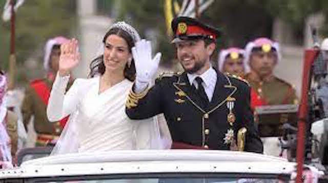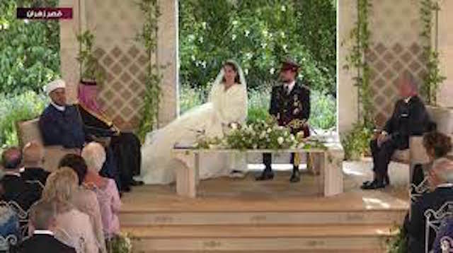 و ارتدى ولي عهد الأردن بذلة سوداء مطرزة باللون الذهبي تشابه تصميم بدلة عرس والده التي ارتداها كذلك جدهما الملك عبد الله الأول. و الأمير حسين أكبر أبناء الملك عبد الله و الملكة رانيا و أصبح وليا للعهد في يوليو 2009 حين كان في الـ 15 من عمره. و أنهى الأمير دراسته الثانوية في مدرسة “كينغز أكاديمي” في الأردن في 2012، و درس التاريخ الدولي في جامعة جورج تاون في الولايات المتحدة قبل أن يتلقّى، كما والده و جده الملك حسين، دروسا عسكرية. و وقع على العقد كذلك العاهل الأردني و والد العروس خالد آل سيف، و ولي العهد الأسبق الأمير حسن بن طلال عم الملك. و تزينت شوارع المملكة بصور العروسين و لافتات كتب عليها “نفرح بالحسين” بينما اصطف آلاف الأردنيين على جانبي مسار موكب العرس الملكي لمشاهدة العروسين و الاحتفال بهما.