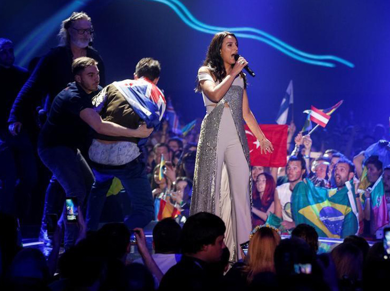 وتابع ملايين المشاهدين حول العالم الواقعة عبر شاشات التلفزيون كما انتشرت بكثافة على وسائل التواصل الاجتماعي خلال الحفل الختامي للمسابقة ليل السبت والذي جرى في كييف.