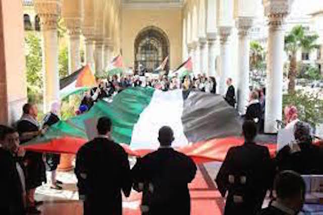 خرج صبيحة اليوم الأربعاء أعضاء جمعية المحامين الشباب بالدار البيضاء، اليوم الأربعاء، للاحتجاج و التنديد بالعدوان الإسرائيلي ضد الشعب الفلسطيني. و خلال هذه الوقفة، رفع أصحاب البذلة السوداء عدد من الشعارات من قبيل: “أوقفوا العدوان الصهيوني على غزة”، و”كلنا فلسطينيون”. و استنكر المحتجون، استهداف صواريخ إسرائيل لأطفال و أبرياء داخل مستشفى المعمداني في غزة. من جهة أخرى تفاعل عدد كبير من طرف المشاهير المغاربة و العرب مع هذه الأحداث المؤلمة، حيث تحولت حساباتهم على مواقع التواصل الاجتماعي، لفضاء لدعم و مساندة الفلسطينيين.