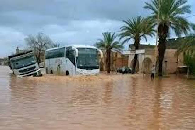 شهد إقليم طاطا كارثة طبيعية استثنائية، حيث تسببت التساقطات الرعدية العنيفة في حدوث فيضانات جارفة أدت إلى مأساة إنسانية. حصيلة ثقيلة سجلتها الحادثة، و سقط 16 قتيلا لحد كتابة الساعة ، بعد أن تم العثور على 3 ضحايا عقب إطلاق حملة تطوعية لشباب جماعة أم الكردان للبحث عن المفقودين بمنطقة سيدي المهداوي، بتعاون مع السلطات المحلية و الدرك و القوات المساعدة و القوات المسلحة و الوقاية المدنية و الهلال الأحمر. الحملة استمرت أزيد من 9 ساعات في واد و غابة سيدي المهداوي أسفرت عن إيجاد الضحايا الثلاث، فيما أعلن عن العثور على جثة سائق الحافلة الذي تم العثور عليه على بعد 35 كلم من مكان حادث الحافلة، و لا يزال البحث جاريا عن باقي المفقودين الستة. الإقليم عاش ساعات عصيبة، أسفر عنها خسائر كبيرة همت الطرق و القناطر و الواحات، ففي جماعات تكزميرت التي تعيش عزلة بعد أن أصبحت الطرق المؤدية إليها أثرا بعد عين بفعل السيول، و كذا بمجموعة من المناطق كدواري إجا و يغرتن.