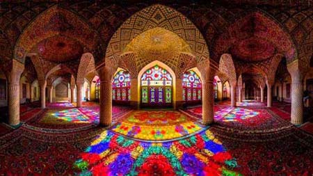 في إيران وبالضبط بمنطقة شيراز، يبرز المظهر الخارجي لمسجد “نصير الملك”، أو ما يعرف بالمسجد الوردي، ذو الفخامة والمفعم بالألوان النابضة، خاصة عندما تخطو داخله في الصباح الباكر، فهو مزخرف بشكل مميز بالزجاج الملون، وهو شيء نادر جدا في عمارة المساجد، ثم بناؤه في عهد “قاجار”، بأمر من الأمير “حسن علي نصير الملك”، عام 1888 ميلادي.