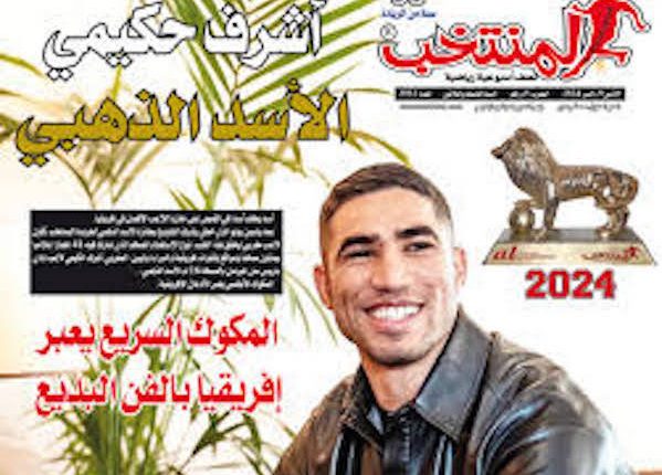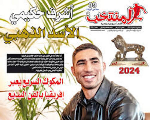 توج اللاعب الدولي المغربي أشرف حكيمي بجائزة الأسد الذهبي لسنة 2024، في استفتاء نظمته جريدة “المنتخب”، شارك فيه 41 جهازا إعلاميا ضم إعلاميين و خبراء رياضيين. و بهذا التتويج، يكون نجم المنتخب الوطني و باريس سان جيرمان الفرنسي ثاني لاعب مغربي يُتوج بجائزة “الأسد الذهبي” في نسختها الإفريقية بعد مواطنه ياسين بونو المتوج بالنسخة الـ 15.
