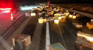 شهد الطريق السيار الرابط بين مكناس و مجاط فجر اليوم السبت، حادث انقلاب شاحنة كشف عن أطنان من المخدرات، فيما يجري البحث عن السائق الذي فر من مكان الحادث. وقع الحادث حوالي الساعة الرابعة صباحاً عندما فقد السائق السيطرة على الشاحنة مما أدى إلى انقلابها و تناثر مئات العلب الكرتونية في الطريق. و عند وصول مصالح الدرك الملكي إلى عين المكان، تبين أن العلب تحتوي على كميات كبيرة من مخدر الحشيش، تُقدر بنحو 16 طناً.