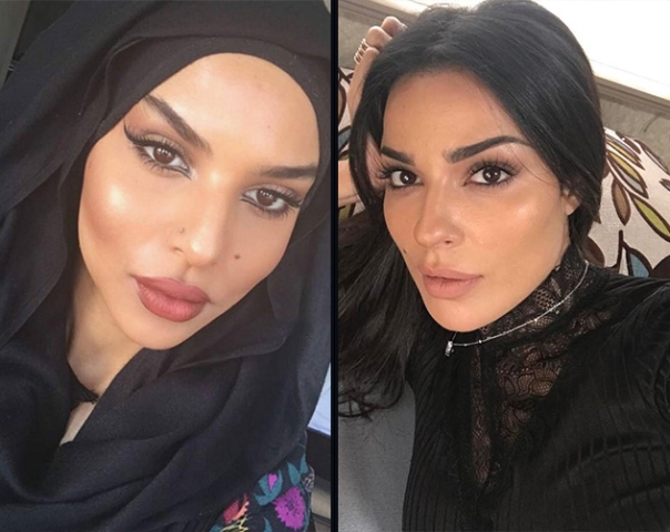من اليمين إلى اليسار: كيم كارداشيان وشبيهتها خبيرة الموضة والجمال السعودية ليالي.