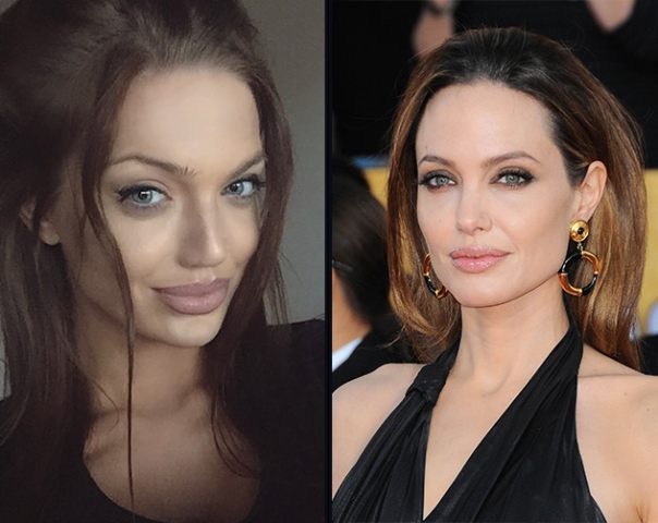 من اليمين إلى اليسار: انجلينا جولي وشبيهتها شلسيا مار.