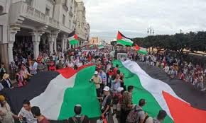 خرج مئات عشرات الآلاف من المغاربة، اليوم الأحد، في مسيرة وطنية تضامنية حاشدة انطلقت من ساحة باب الأحد بمدينة الرباط إلى قبالة مبنى البرلمان، داعمة صمود الشعب الفلسطيني أمام الآلة الحربية الإسرائيلية. المسيرة الحاشدة، شارك فيها نساء و رجال، أطفال و مسنين، بالإضافة للعناصر الأمنية التي ظلت ساهرة على تأمين التظاهرة و تمتيع المتظاهرين بالحق في التظاهر السلمي. و خلال هذه المسيرة طالب المغاربة السلم و إنهاء الحصار المفروض على الغزاويين، كما تمت المطالبة بإغلاق مكتب الاتصال الإسرائيلي الموجود بالرباط.