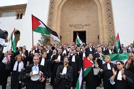 بعد الوقفة المليونية التي نظمت يوم الأحد الماضي، و التي تلتها أول أمس الاثنين، نظم عشرات المحامين المغاربة، اليوم الأربعاء، وقفة احتجاجية في مدينة الدار البيضاء تضامنا مع قطاع غزة ضد الإبادة التي ترتكبها إسرائيل في قطاع غزة و رفضا لمخططات تهجير الفلسطينيين. و جاءت الوقفة تحت شعار “أوقفوا العدوان الصهيوني” استجابة لدعوة من جمعية المحامين الشباب بالدار البيضاء. و خلال الوقفة، رفع المحامون الذين خرجوا بزيهم الرسمي الأعلام الفلسطينية، و رددوا شعارات داعمة للقضية الفلسطينية.