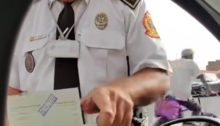 قامت مصالح الأمن بمدينة مراكش، توقيف شرطي بعد ظهوره في مقطع فيديو متداول على مواقع التواصل الاجتماعي، و هو يطلب من سائق مبلغ 100 درهم بشكل غير قانوني، بدل أداء الغرامة المحددة قانونًا في 300 درهم مقابل وصل رسمي.