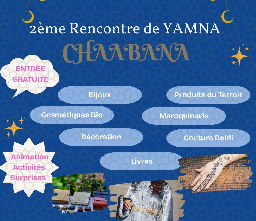 في إطار “شعبانة”، باعتبارها فترة للتواصل و نقل القيم و الاستعداد الروحي التي تسبق شهر رمضان المبارك، تنظم YAMNA – l’artisanat du mieux-être لقاء “شعبانة”، و هو حدث مخصص لتثمين الحرف التقليدية المغربية، و العمل اليدوي، و الإبداع النسائي. سيجمع هذا اللقاء، على مدى يومين، حرفيات و رائدات أعمال مغربيات من مجالات متعددة، تشمل: الحُليّ و الأحجار شبه الكريمة، الخياطة التقليدية، مستحضرات التجميل الطبيعية، الإكسسوارات المصنوعة يدويًا، الديكور، منتجات المجال القروي، الحلويات الحرفية، و كتب الأطفال. و لا يقتصر لقاء شعبانة – YAMNA على كونه معرضًا للبيع فقط، بل يشكل فضاءً للقاء و الحوار، يهدف إلى نقل الخبرات، و تقاسم التجارب، و تسليط الضوء على مشاريع تقودها نساء ملتزمات بمقاربة أصيلة و مسؤولة.