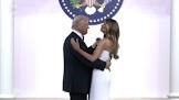 ظهر الرئيس الأميركي دونالد ترامب و هو يرقص على أنغام أغنية ” بارك الله في الولايات المتحدة الأمريكية”، خلال حفل عشاء بمناسبة عيد الحب أقيم في منتجعه الشهير مارالاغو في فلوريدا، وسط حضور من أنصاره و ضيوف النادي الخاص.