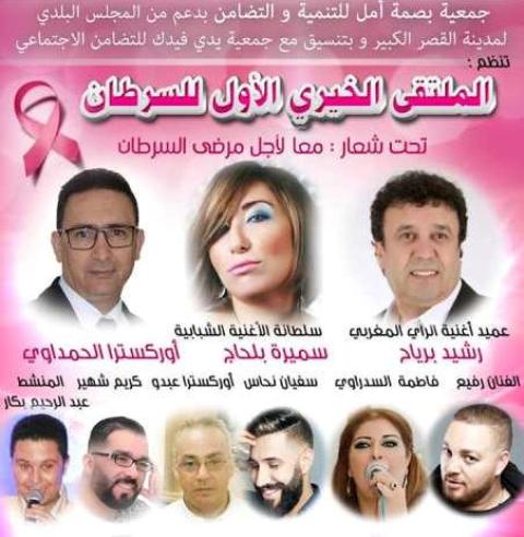نظمت جمعية “بصمة أمل للتنمية والتضامن” بتنسيق مع جمعية “يدي فيدك” للتضامن الاجتماعي الملتقى الخيري الأول للسرطان تحت شعار “معا لأجل مرضى السرطان” بمدينة القصر الكبير وذلك يومي الأحد 15 و الاثنين 16 أبريل 2018.