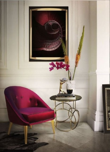 - يمكنكِ استخدام طاولة عالية بعض الشيء ، مع وضع فاز ورود ملائمة أو بعض التحف الملائمة فوقها ، أو وضع “أباجور” أرضي بقاعدة ، فهو يعطي رونقاً لا مثيل له .