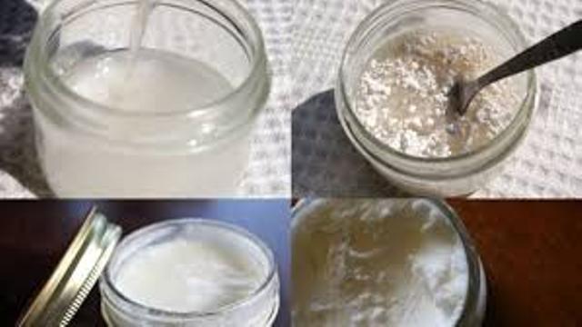 نسخن قليلا زيت جوز الهند ونضيف عليه باقي المكونات ونمزجها جيدا حتى تتجانس مع بعضها ثم نضع الخليط في علبة معقمة و يصبح الوصفة جاهزة.