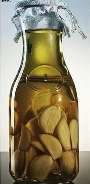 في قارورة زجاجية، ضعي بعض فصوص الثوم بعد ثقبها بالشوكة أو الإبرة بعد تعقيمها مع كمية من زيت الزيتون.