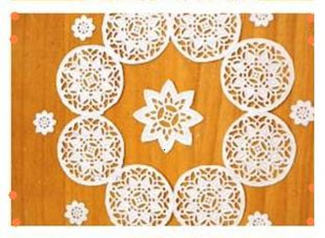 اخذي تشكيلات من البلاستيك على شكل ورود أو أشكال هندسية أو ما تحبين من الأشكال و قطعيها كما في الصورة.