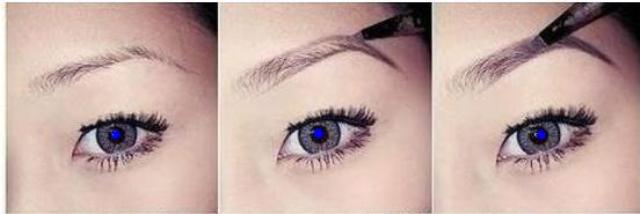 استخدمي ظلال جفون قريب من لون الشعر لرسم حدود الحاجب و تغميقه بحسب لون شعرك.