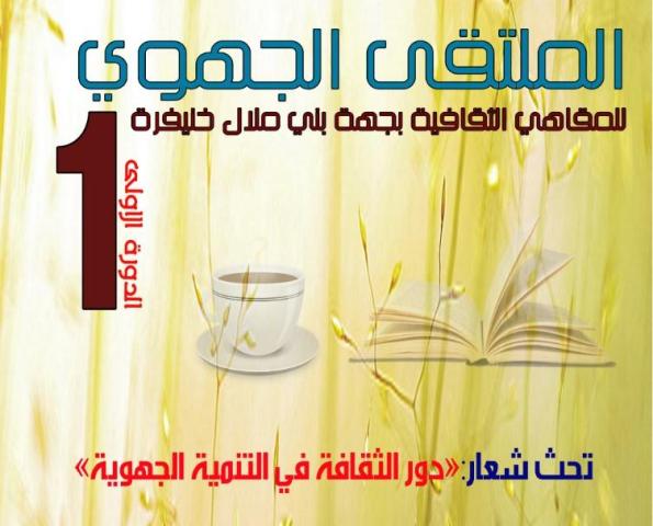في إطار تنزيل برنامجها الثقافي، و من أجل المساهمة في التنمية الثقافية بجهة بني ملال خنيفرة و تحت شعار: ” دور الثقافة في التنمية بالجهة”، تنظم جمعية الصفوة الثقافية و الفنية و التضامن و التأهيل الاجتماعي بالفقيه بن صالح و شبكة المقاهي الثقافية بالمغرب بشراكة مع المديرية الجهوية لوزارة الثقافة و الاتصال ببني ملال الملتقى الجهوي الأول للمقاهي الثقافية أيام 26 و27 و 28 أبريل 2019 بمدينة الفقيه بن صالح.