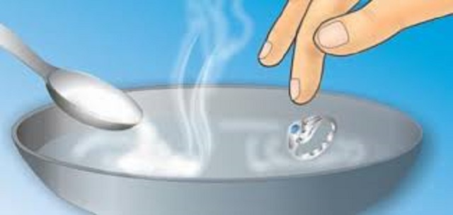 اخلطي الماء المغلى مع صودا الخبز و ضعي فيها قطعة من رقائق الألومنيوم ثم ضعي الفضيات في الخليط بضع ثوان و بعد ذلك أزليها بواسطة ملقط لكي تتفادي استعمال اليد.